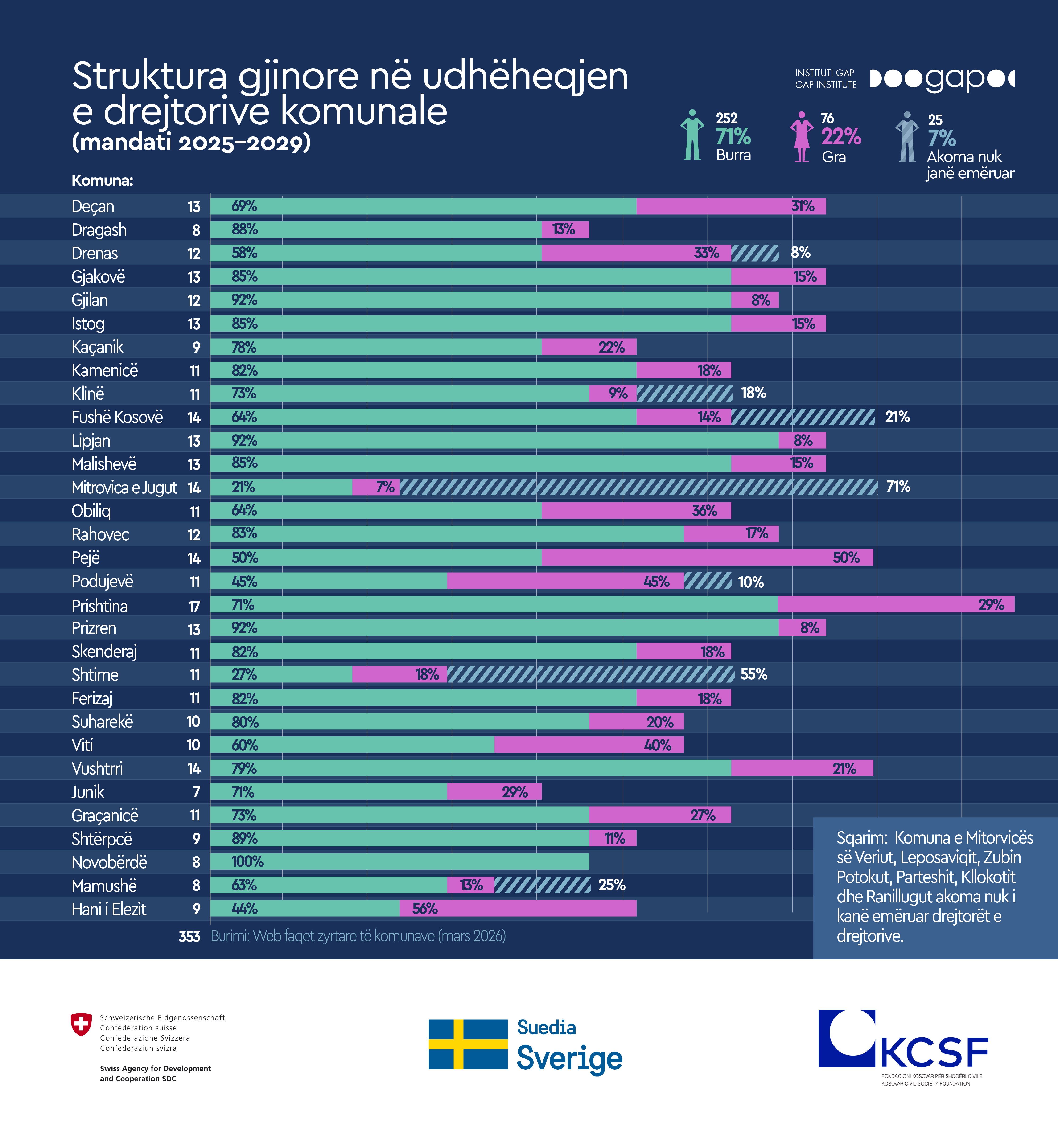 Struktura gjinore në udhëheqjen e drejtorive komunale (2025-2029)
